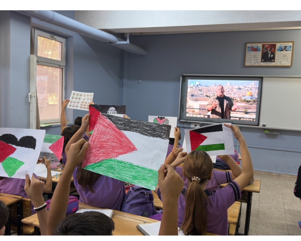 Okulumuzda Filistin ve Gazze temalı destek etkinlikleri yapıldı. Sınıflarımızda Kudüs belgeseli izletildikten sonra öğrenciler yaptıkları görsellerle desteklerini paylaştı.